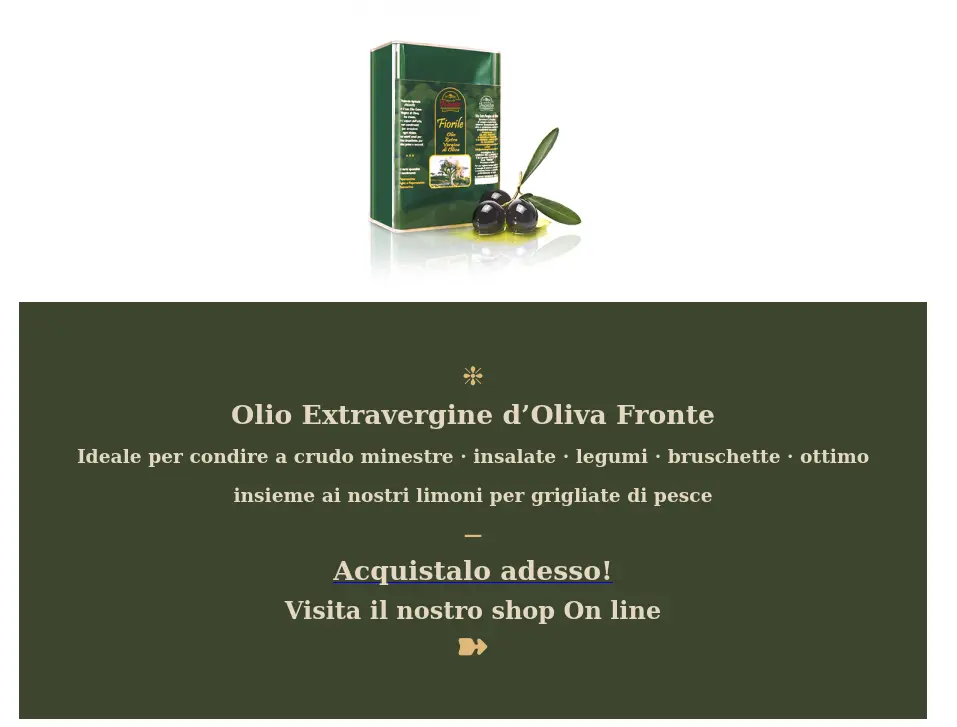 Questo è l’olio da sempre usato in famiglia. Lo facciamo per noi in produzione limitata e vogliamo condividerlo con chi voglia riscoprire i sapori genuini di una volta. Per ottenere il nostro olio osserviamo tre regole fondamentali: Il periodo giusto di raccolta; molitura entro 12 ore dalla raccolta; eliminazione di possibili cause di ossidazione durante il processo di lavorazione del frutto, luce/aria/sbalzi termici.